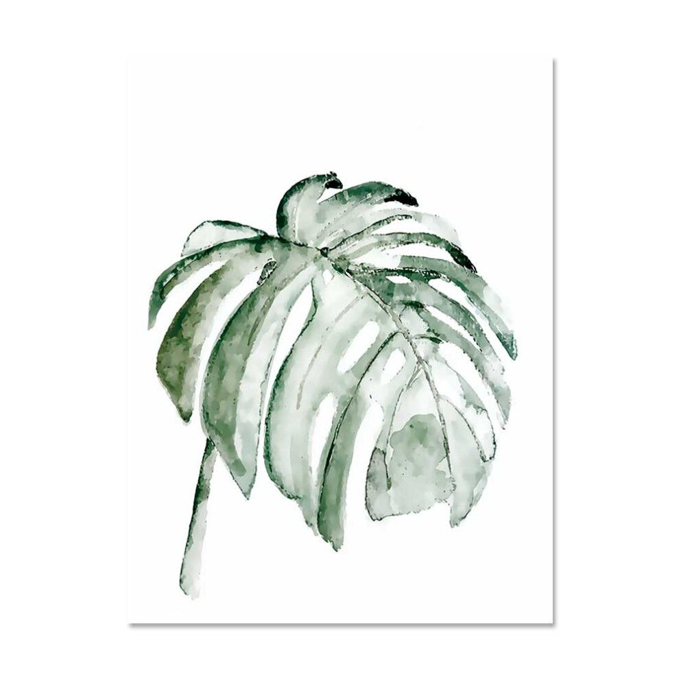 Large Watercolor Print Botanical Poster, Canvas Wall Art for Bathroom Decor, Nordic Green Plant Painting No Frame - 40x50