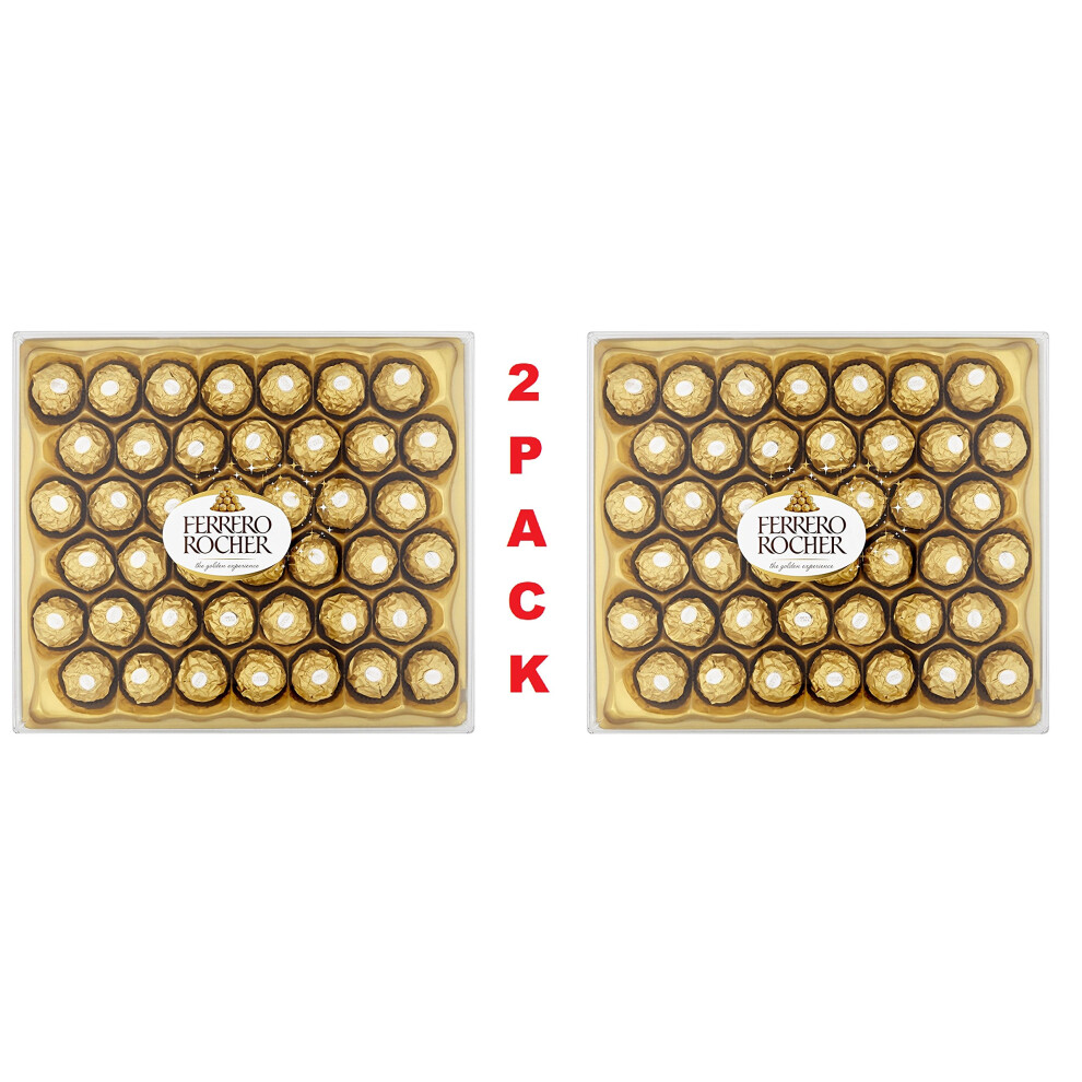 Ferrero Rocher Pralines, Chocolate Gift, Christmas Chocolate, Large Chocolate Box Covered in Milk Chocolate and Nuts, Box of 42 (525g) (Pack of 2)
