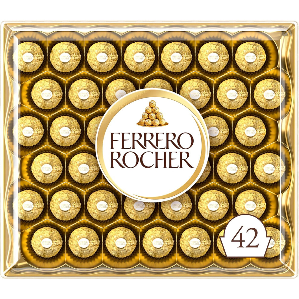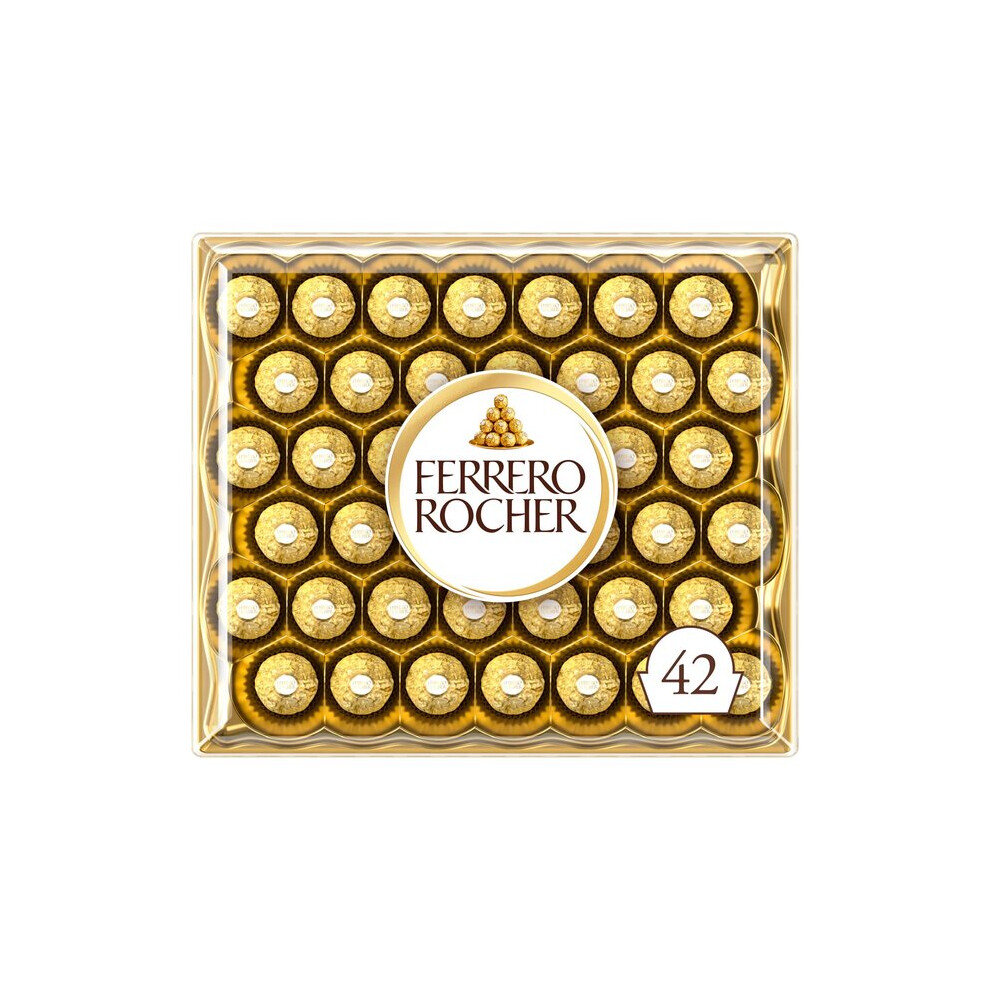 Ferrero Rocher Pralines Gift Box - Pack of 42 Golden Wrapped Hazelnut Chocolates, 525g, Perfect Valentine's Day & Easter Treat