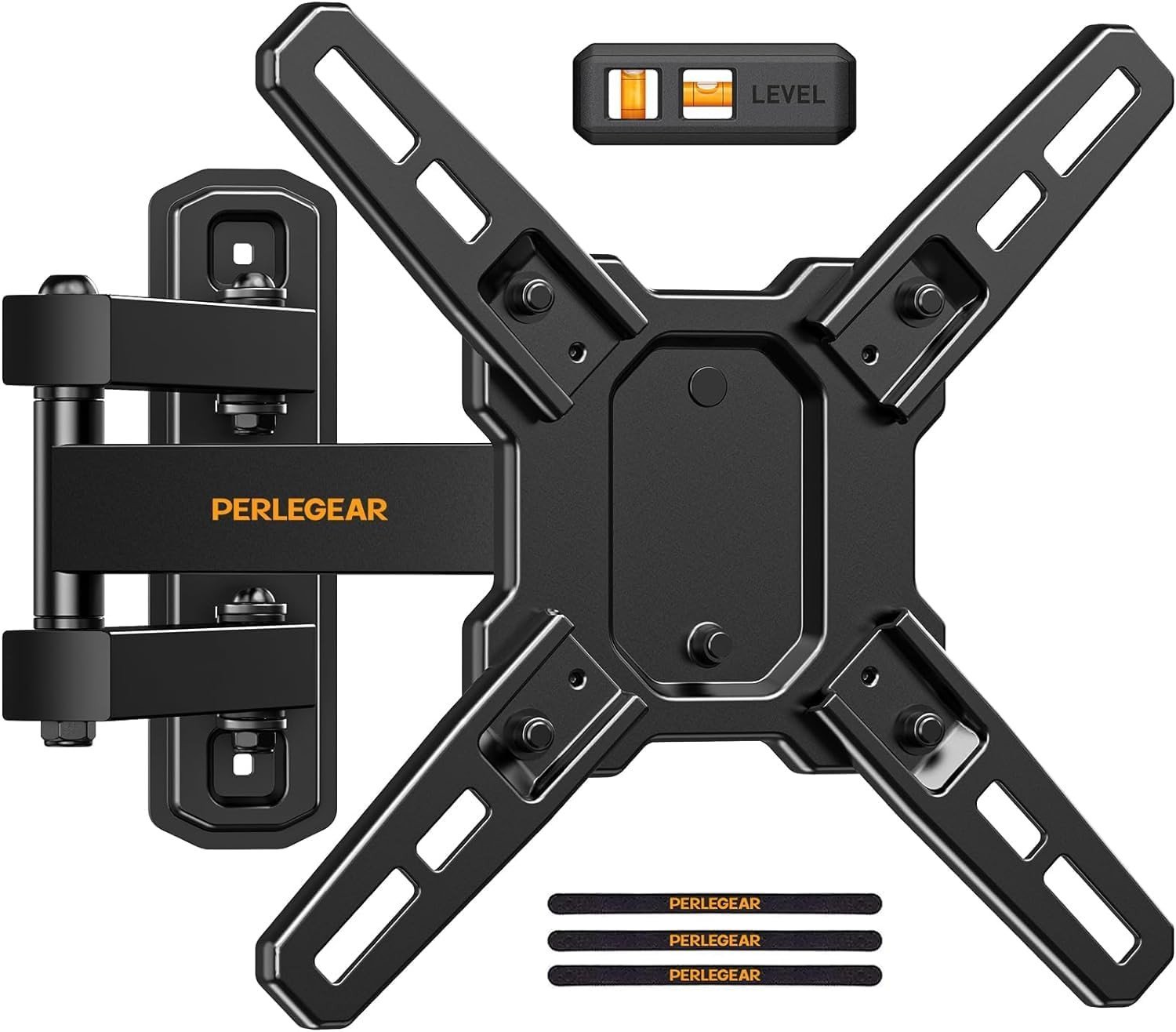 Perlegear UL-Listed Full Motion TV Wall Bracket for 42?90 Inch TVs up to 68KG, Universal Dual Arm TV Bracket with Tool-Free Tilt, Swivel, Extension,