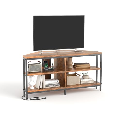 CAIYUN 106 cm Corner TV Unit with Power Outlet, 42 inch TV Stand Cabinet for Living Room, TV Bench for 32/45/50/55 inch, Wooden TV Stand for Bedroom, Rustic Brown