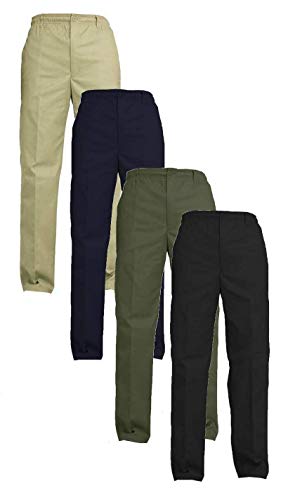 MyShoeStore Mens Smart Rugby Trousers Fully Elasticated Stretch Waist Band with Draw Cord Comfortable Fit Workwear Bottoms Straight Leg Casual Formal Work Pants Size 30-48(Black,42/31)