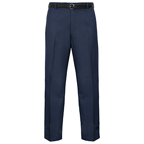 MyShoeStore Mens Formal Trousers Casual Business Office Work Home Belt Loops Smart Dress Pants Straight Leg Flat Front Everpress Pockets Waist (Navy Blue, 42/29)