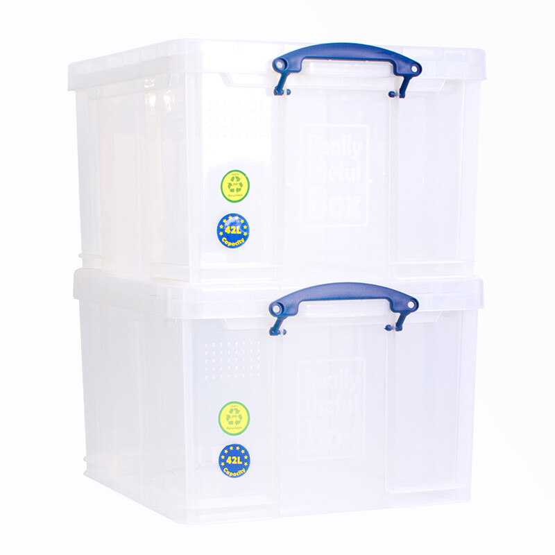 Really Useful Plastic Storage Box 42L Clear (Pack of 2)