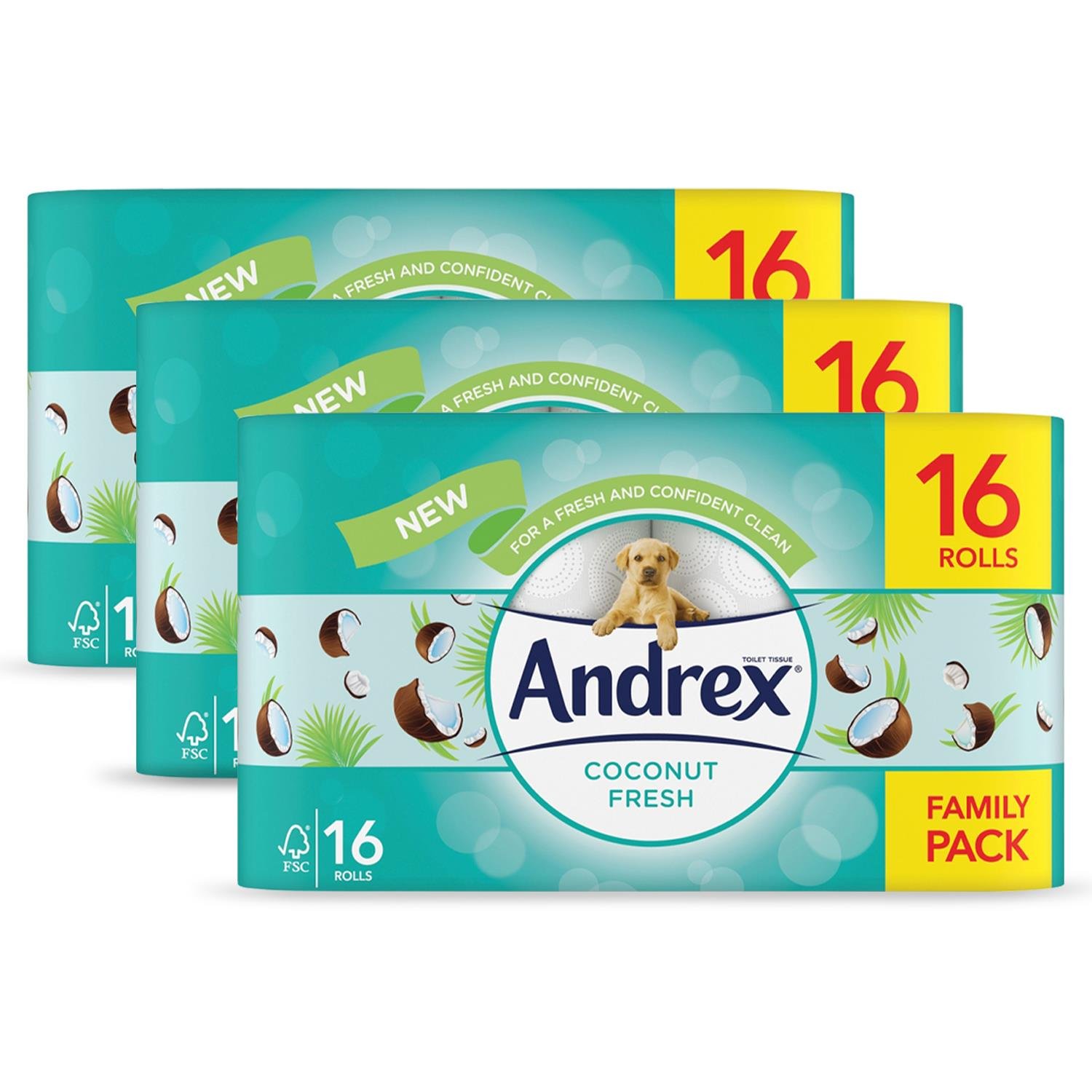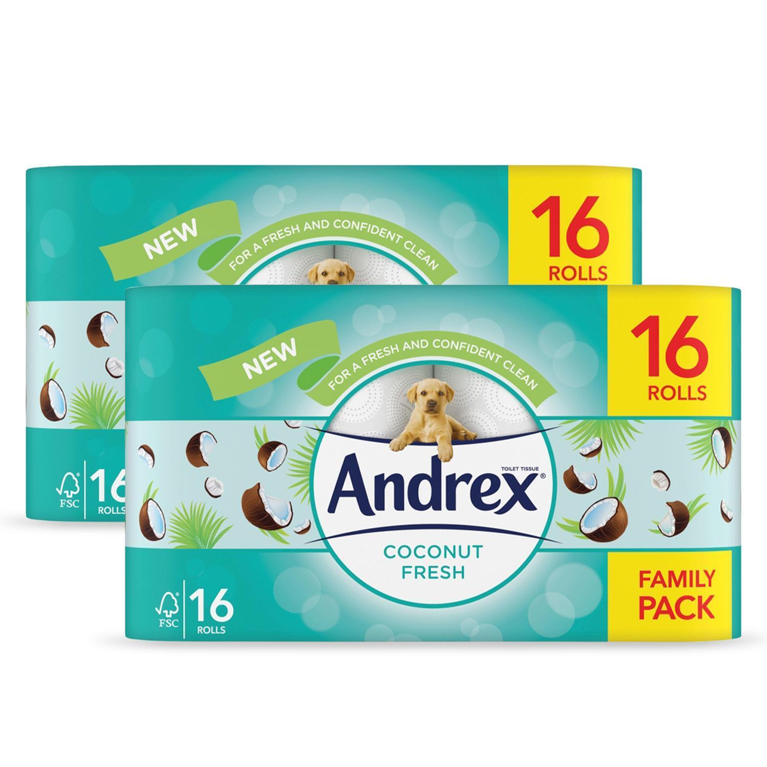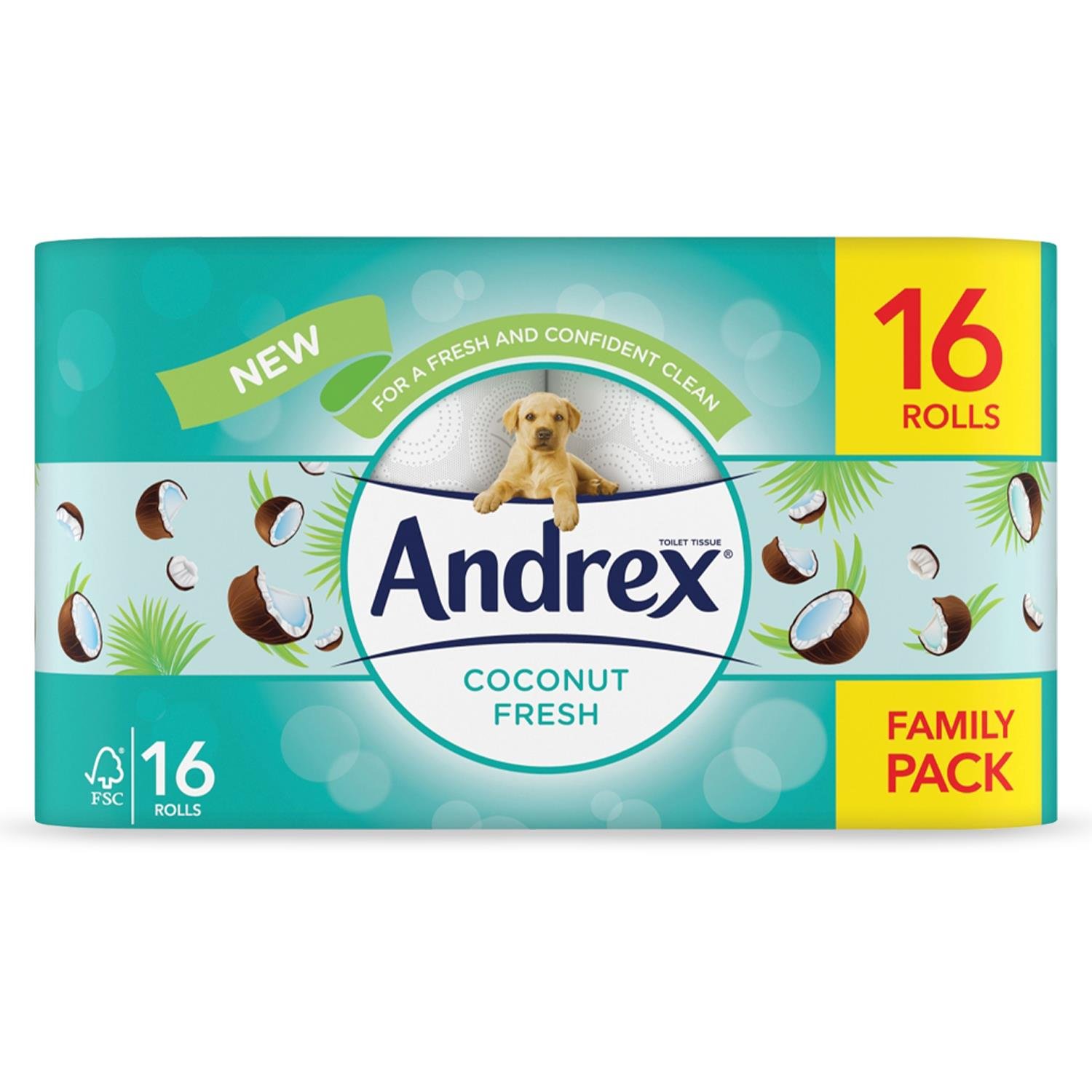 Andrex Toilet Rolls Coconut Fresh x16, 2 Ply Toilet Tissue Paper