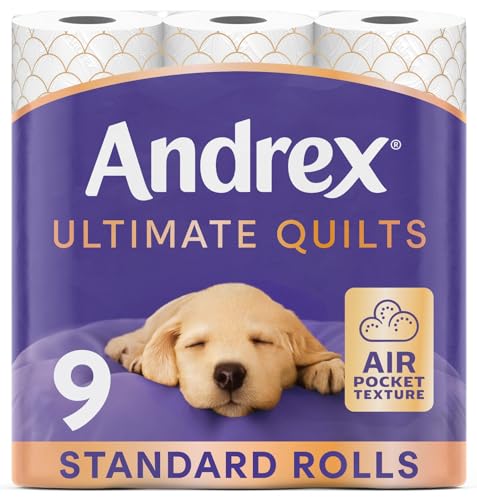 Andrex Ultimate Quilts Toilet Paper 9 Rolls, Air Pocket Technology for Soft, Thick Sheets -Pack of 9 Quilted Toilet Rolls, FSC Certified