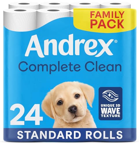Andrex Complete Clean Toilet Roll 24 Rolls (Previously Andrex Classic Clean Toilet Tissue) Unbeatable Toilet Paper with Unique 3D Wave, FSC Certified