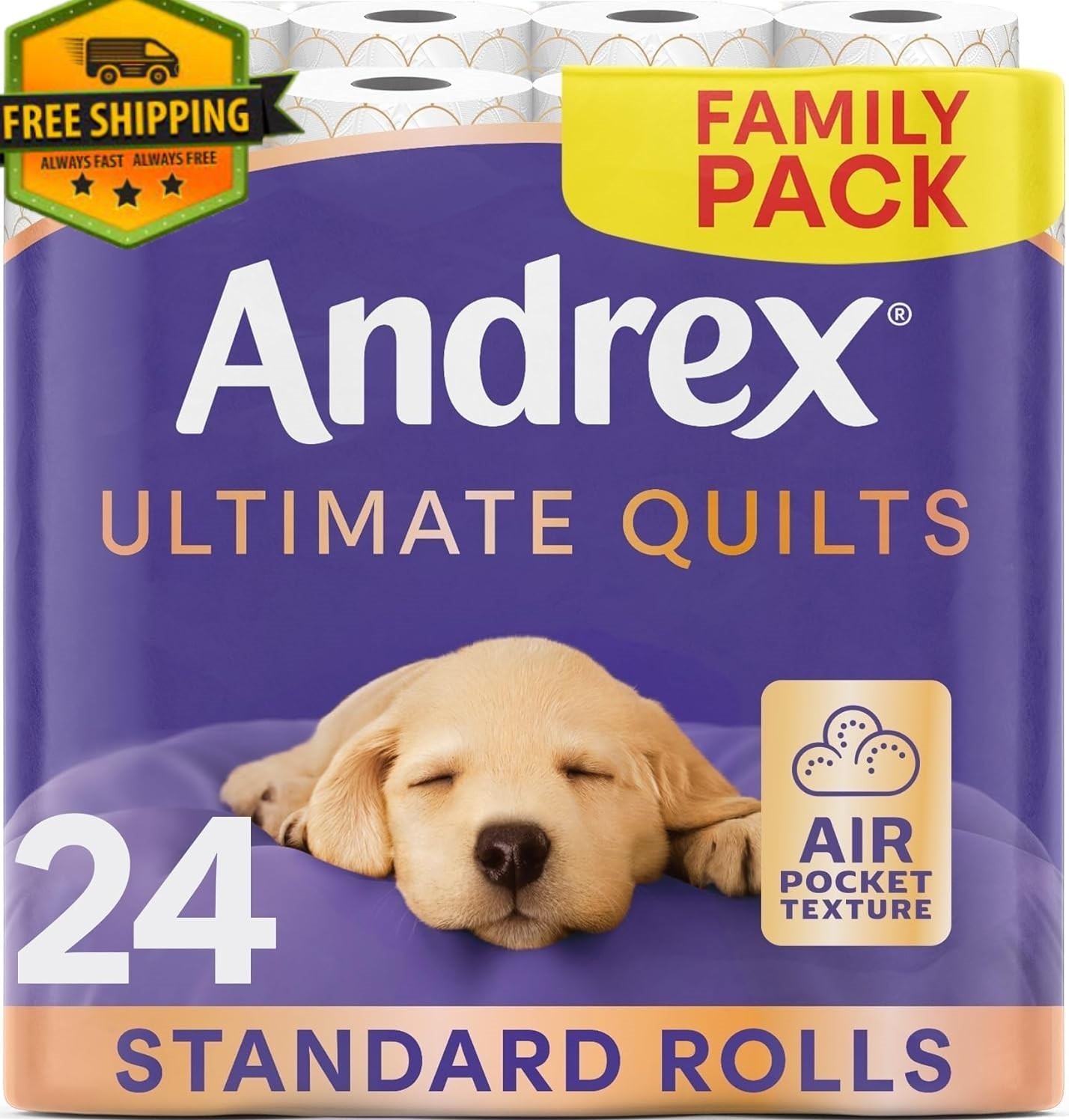 Andrex Ultimate Quilts Toilet Tissue 24 Rolls – Soft, Thick