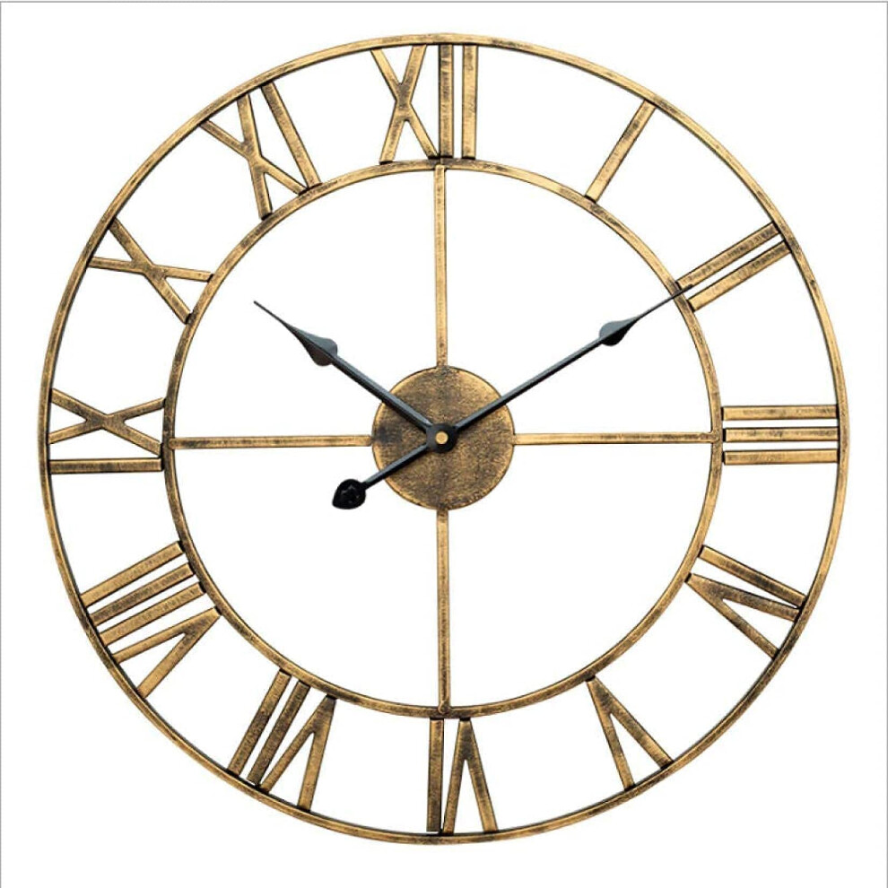 (Gold) 45cm Large Wall Clock Big Roman Numerals Giant Open Face Metal For Home Outdoor Garden
