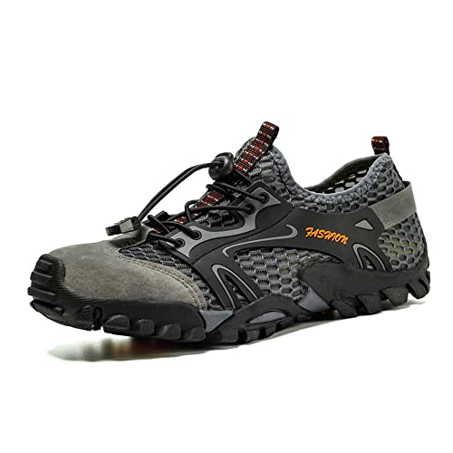 GITZING Water Shoes for Women Men Beach Quick-Dry Swim Aqua Socks Breathable Barefoot Shoes for Surfing Running Driving Pool YOG, Grey 12.5 UK/47 EU