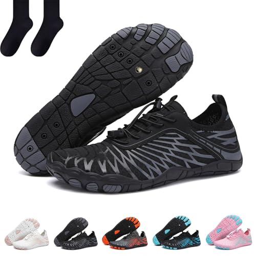 Steppli Water Shoes Beach Swim Aqua Wet Socks Yoga Quick-Dry Breathable Weitsuit Non Slip Lightweight Shoes for Men Women Black EU46/47=UK10.5/11.0