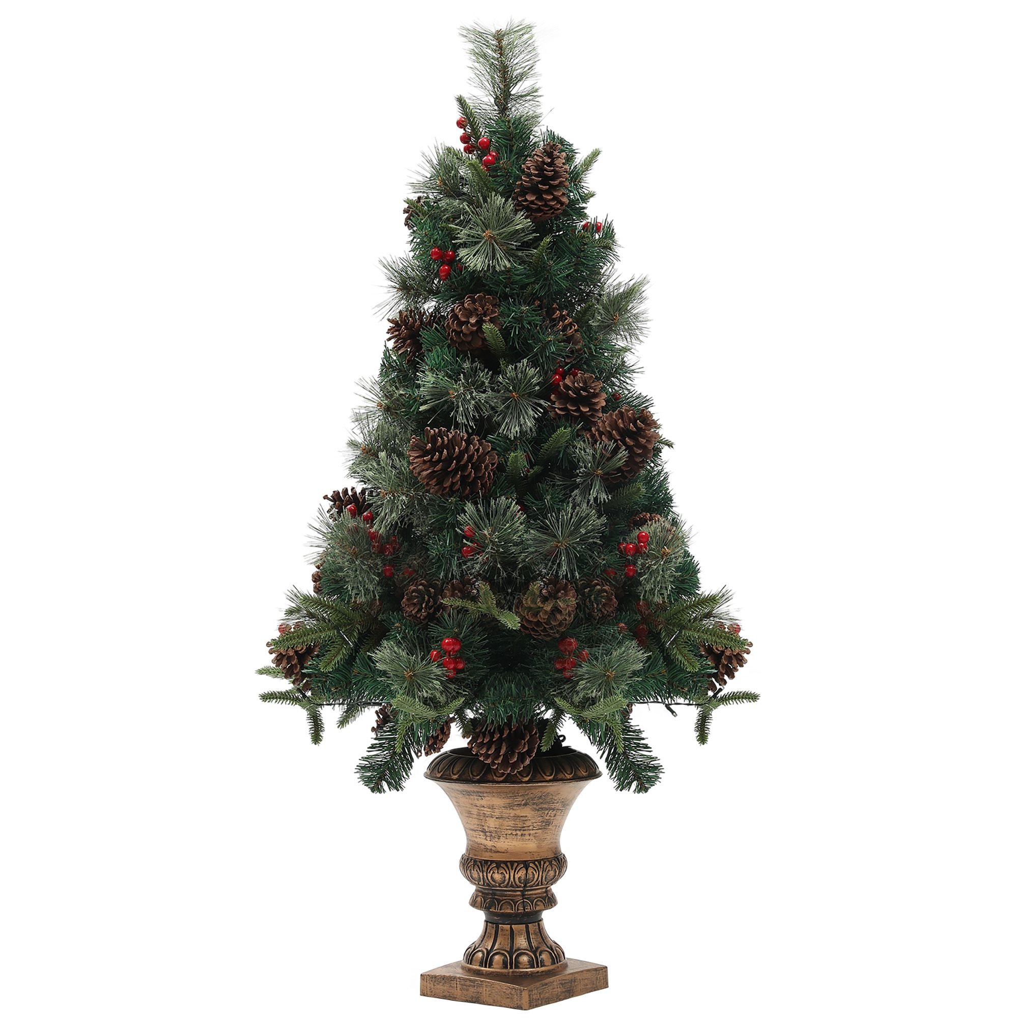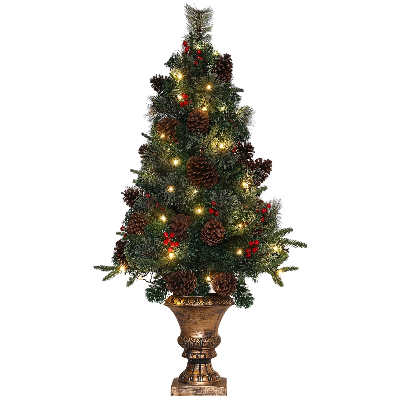 HOMCOM 4FT Christmas Tree Spruce Entrance Décor W/ Clear LED Lights Vase Base
