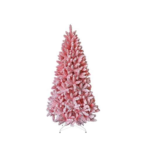 SHATCHI 4Ft Flocked Pink Christmas Tree Snow Dusted Artificial Pine Foldable Metal Stand 308 Tips Hinged Branches Snowy Bushy Luxury Holiday Home Decoration, PVC, 120cm