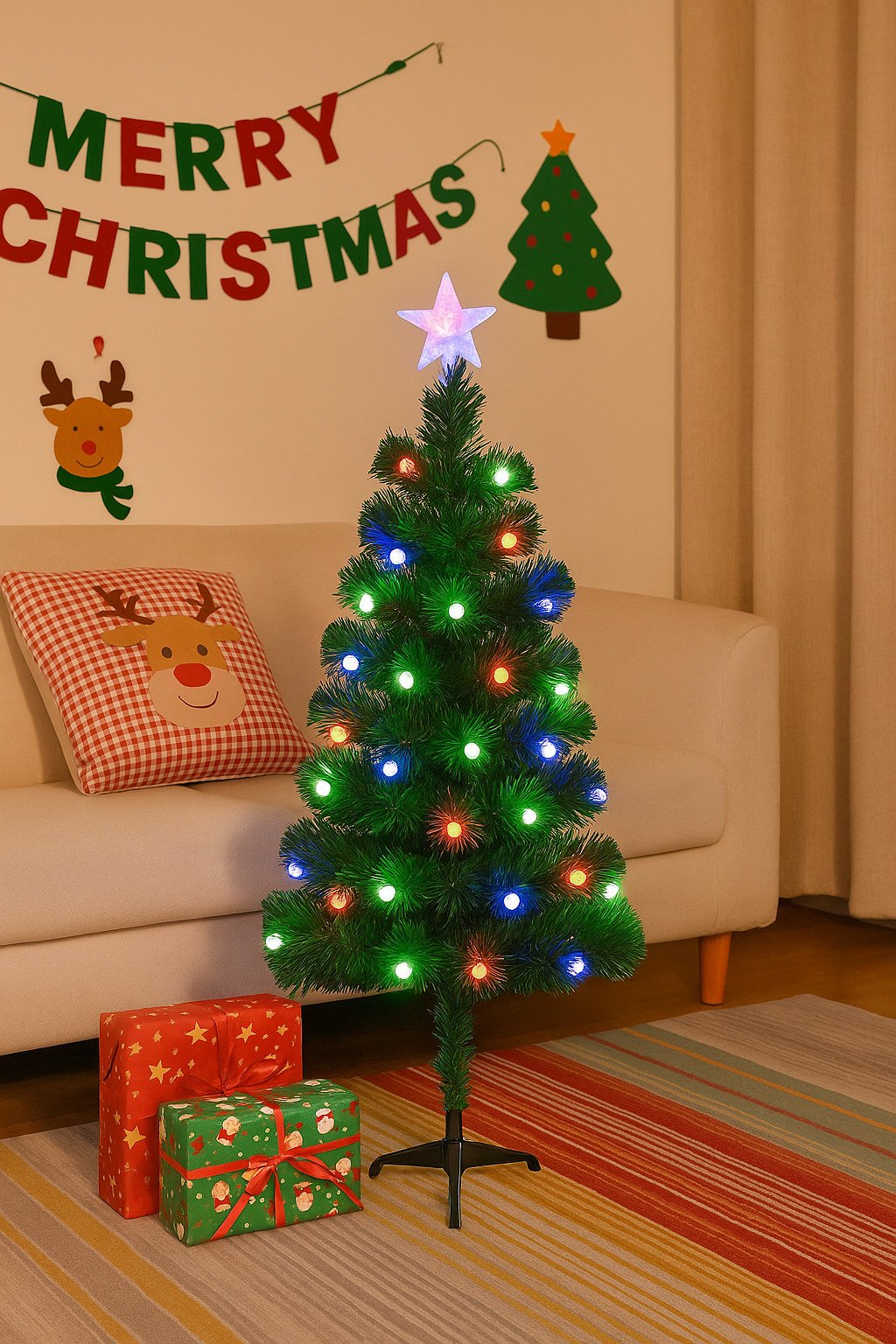 HOMCOM 4FT Multicoloured Artificial Christmas Tree W/Fibre Optic Lights Pre-Lit