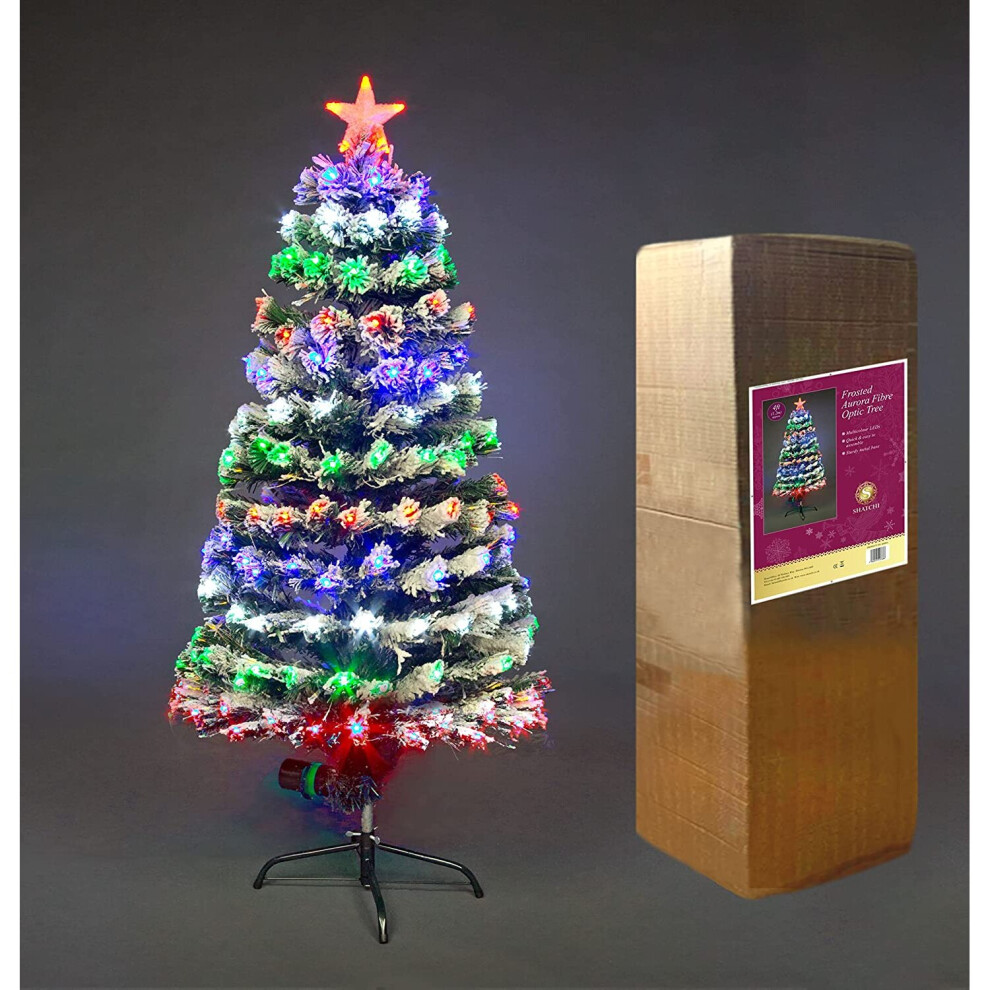 4Ft/120cm Fibre Optic Christmas Tree Pre-Lit with Multicolour LED Lights Frosted Tips 8 Different Modes Various Light Effects Holiday Xmas Home Decorations