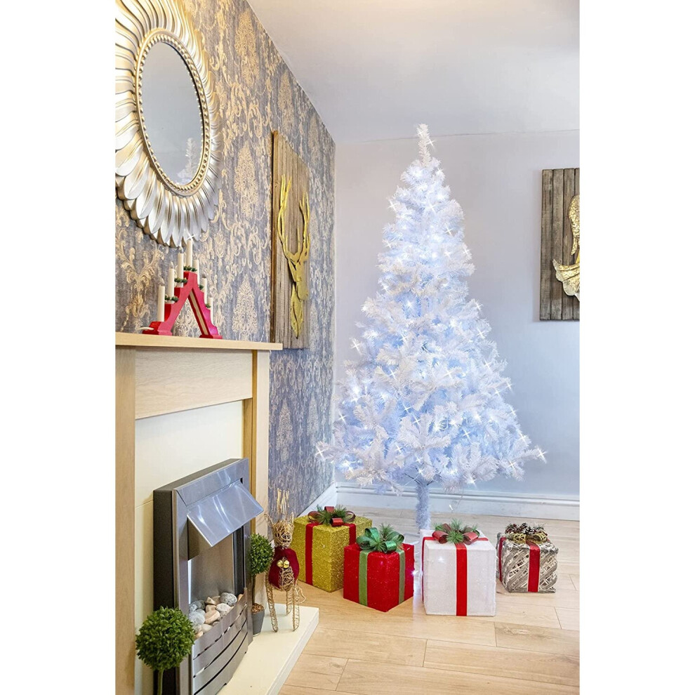 4ft/120cm Pre Lit Artificial Christmas Tree Alaskan Pine White 230 Tips, 110 Warm White LEDs