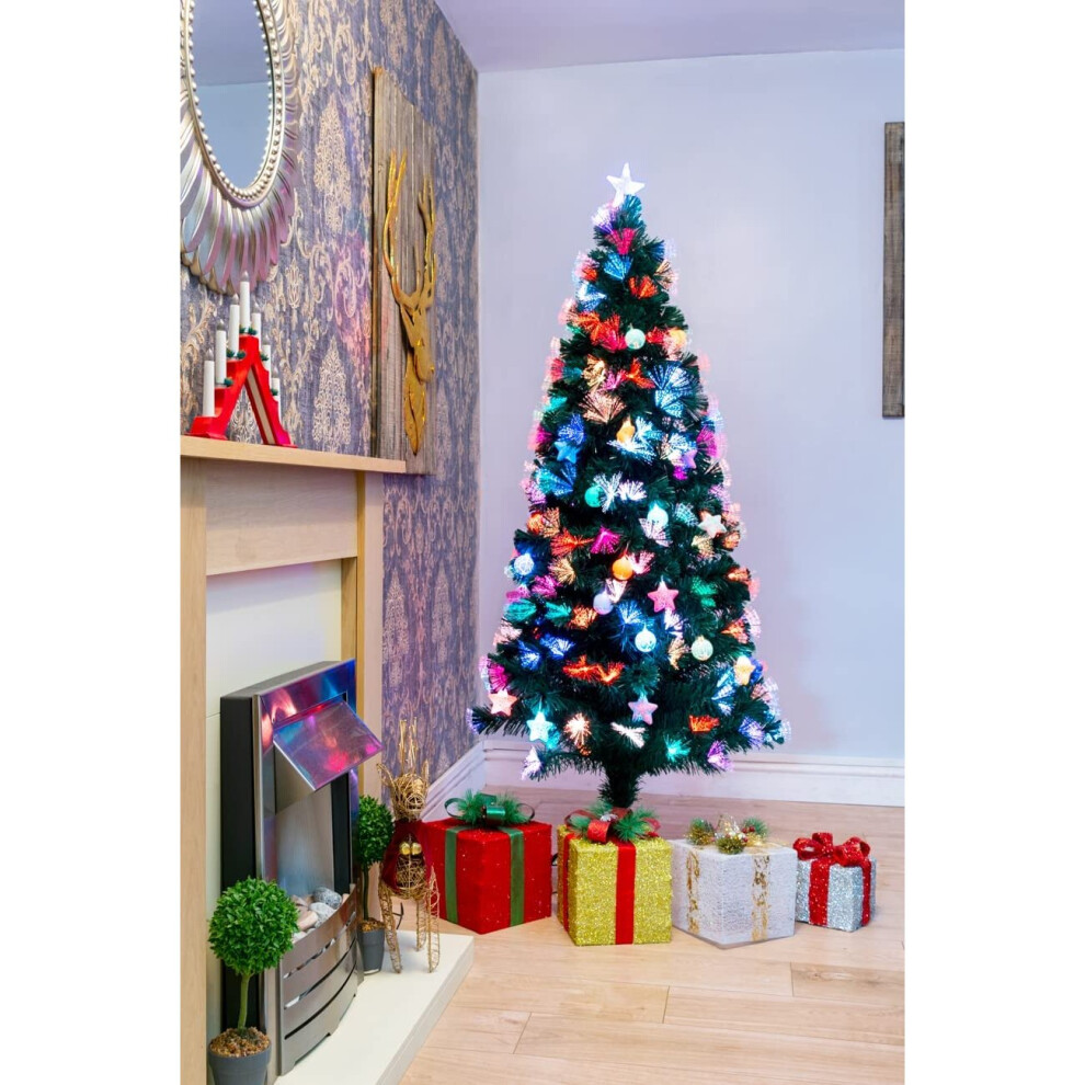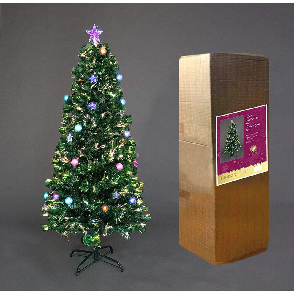 (4Ft) Baubles and Stars Fibre Optic Christmas Tree LED Pre-Lit