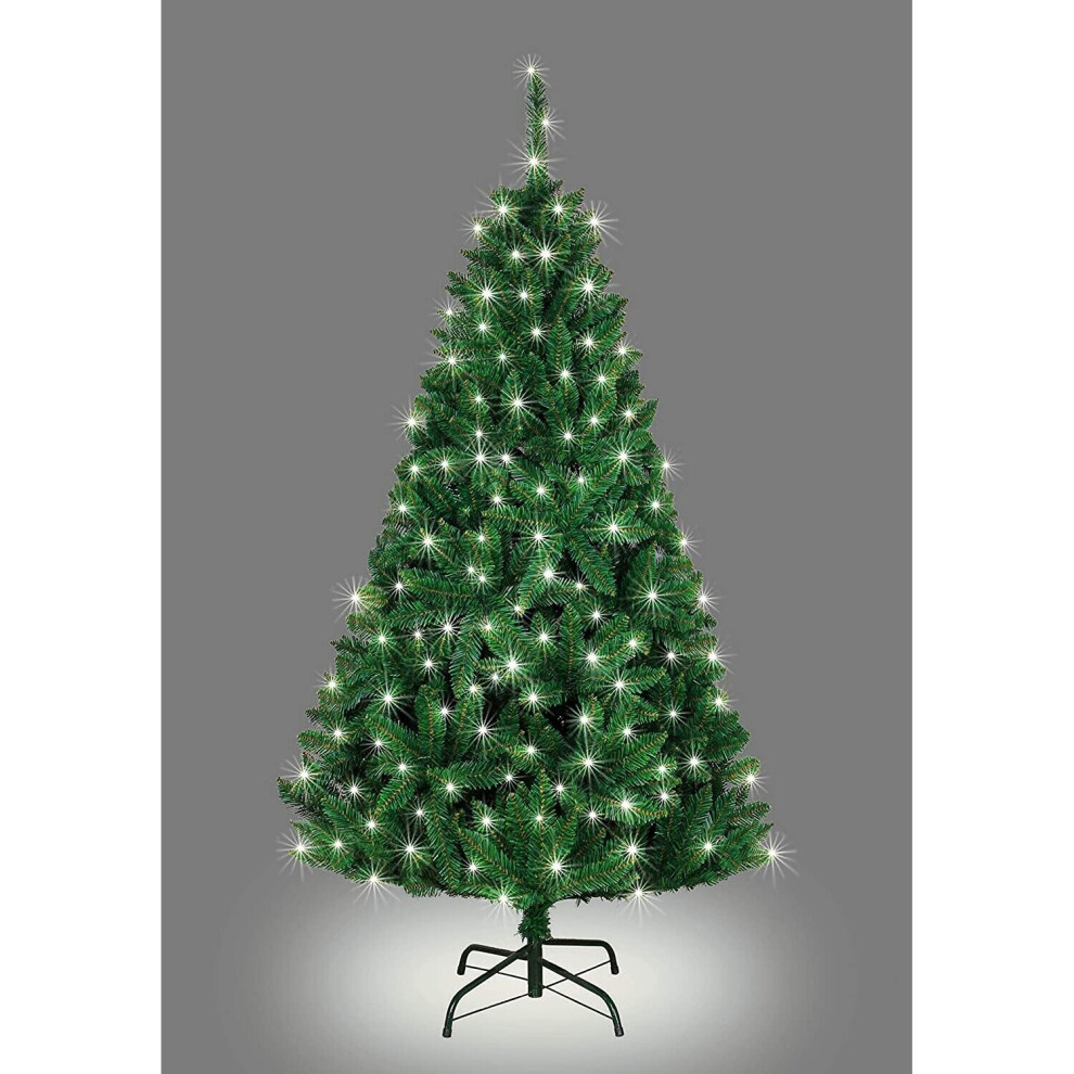 SHATCHI 4Ft-8Ft Pre-Lit Artificial Christmas Tree Deluxe Imperial Pine Pencil Point Tips Hinged Branches Xmas Home Decorations Metal Stand, White W/White LEDs, 7ft