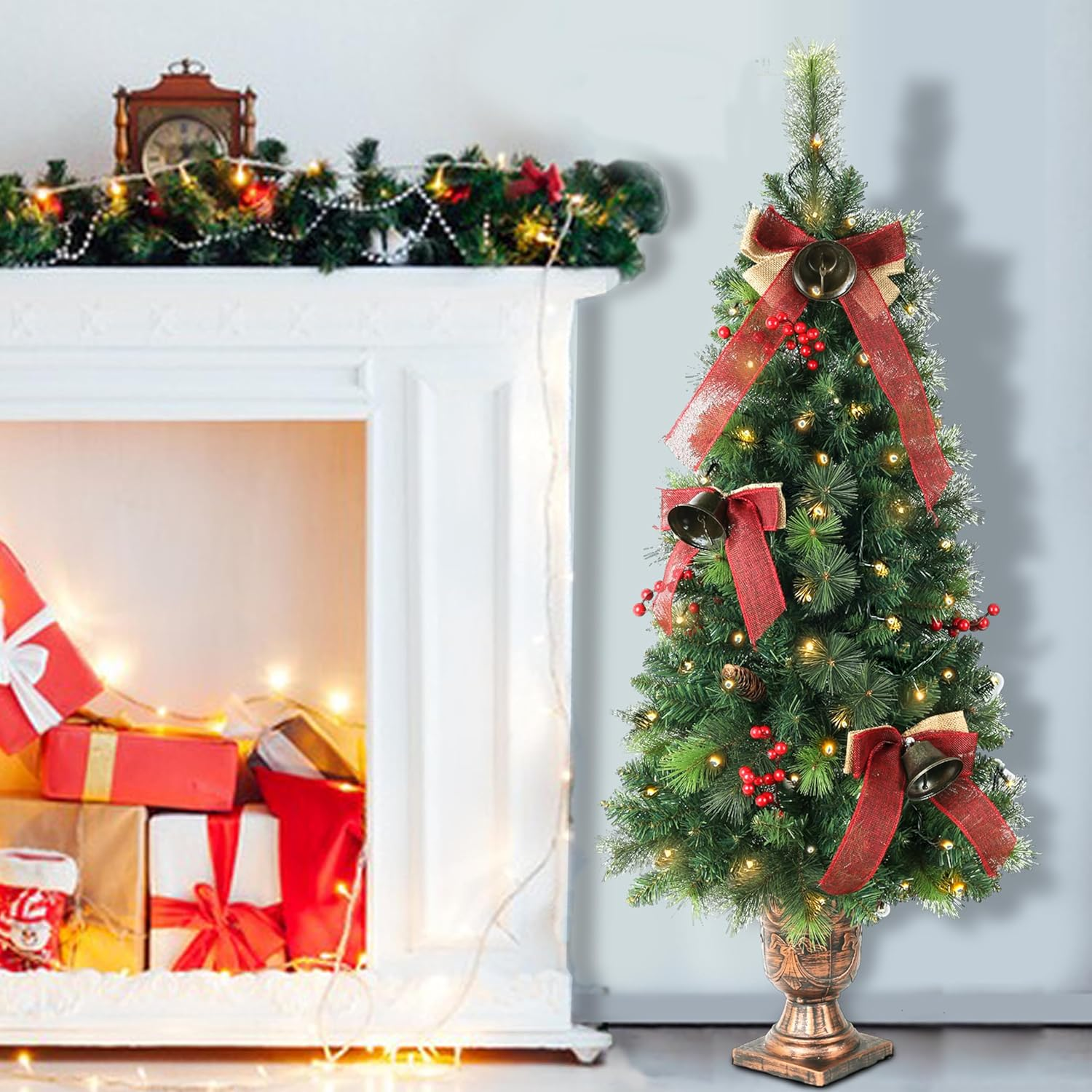 4FT Pre-Lit Artificial Christmas Tree for Tabletop, Mini Holiday Decor with Warm Lights for Family Gatherings, Fireplace, Indoor and Outdoor Use