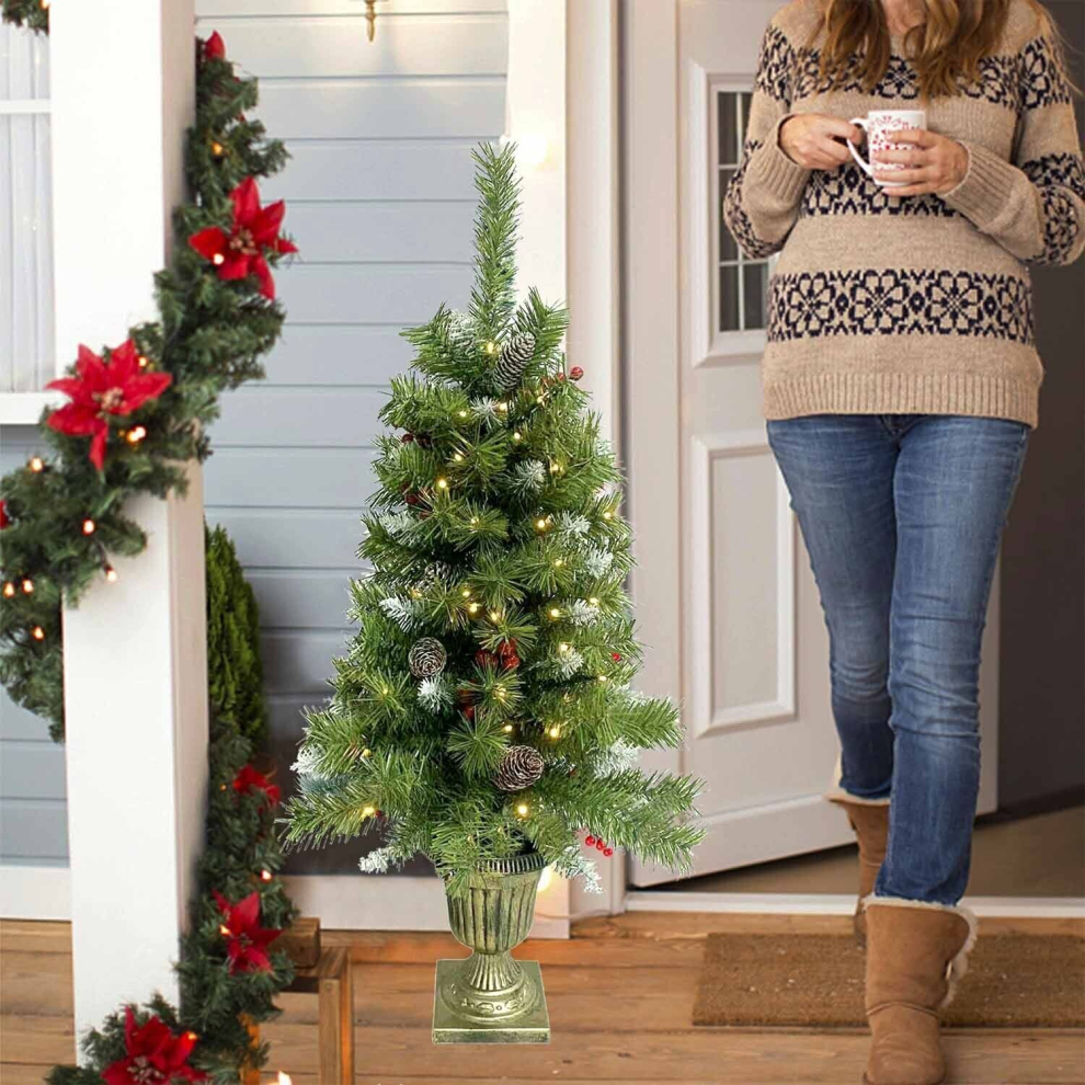 4-Ft Pre-Lit Artificial Entrance Christmas Tree - 100 LEDs, Green/White
