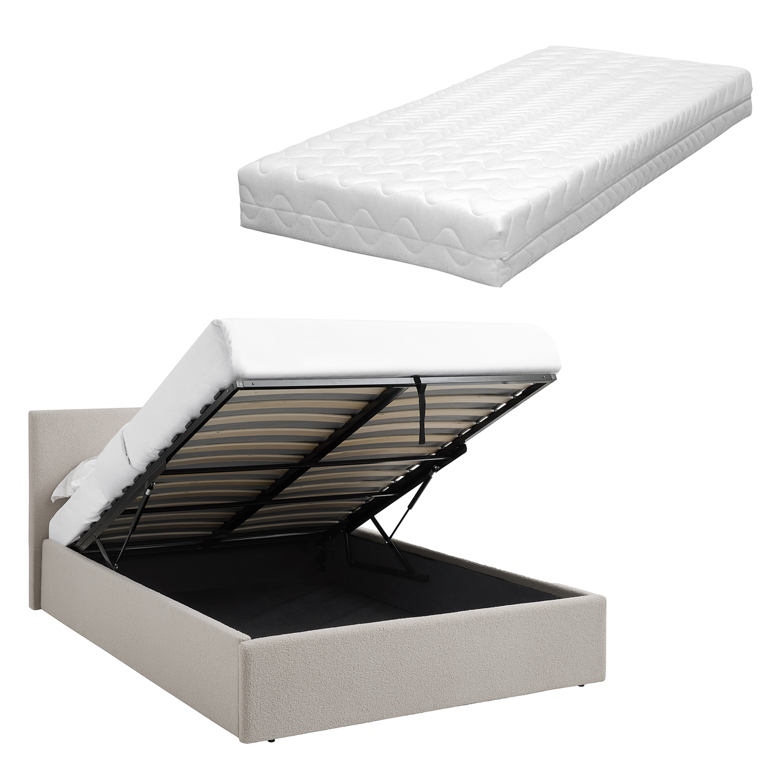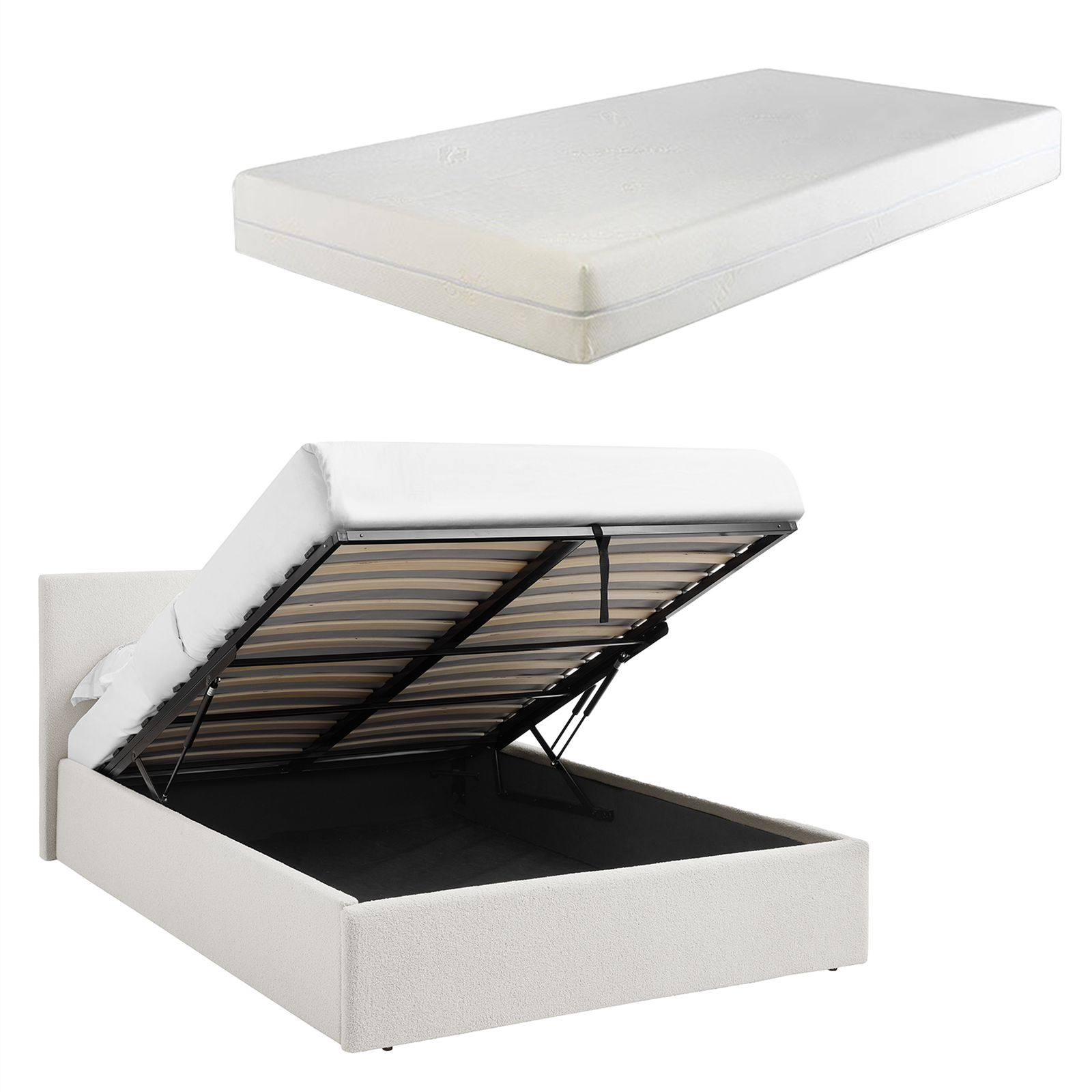 TEDDY BOUCLE 4FT Small Double Ottoman Storage Bed Beige + Spring & Foam Mattress