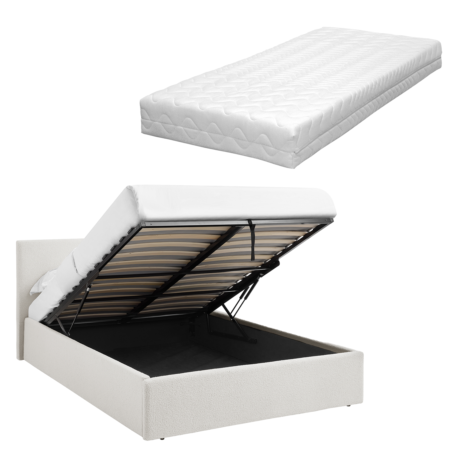 TEDDY BOUCLE 4FT Small Double Storage Ottoman Bed White + 15cm Foam Mattress