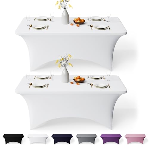 GFCC 4FT Spandex Table Covers 2 Pack - White Stretch Fitted Rectangular Tablecloth Washable & Wrinkle Resistant Spandex Tablecloths for Party, Wedding, Banquet, Events & Home