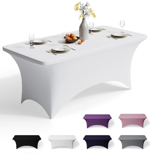 GFCC 4FT Spandex Table Covers - White Stretch Fitted Rectangular Tablecloth Washable & Wrinkle Resistant Spandex Tablecloths for Party, Wedding, Banquet, Events & Home