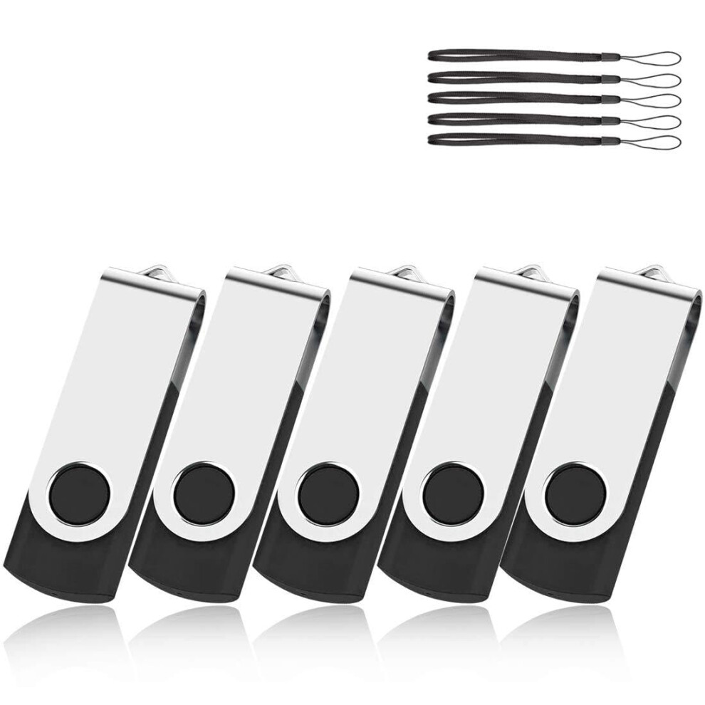 4GB USB Stick 5 Pack Memory Stick 16 GB Thumb Flash Pen Drive Computer Storage Device (Black With Lanyard)