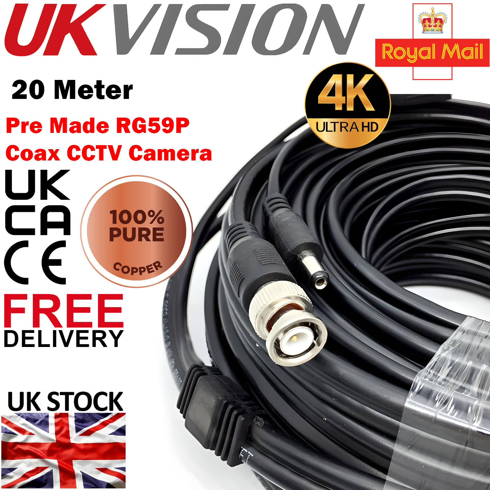 20M BNC RG59 Video DC Power Cable Lead 4K CCTV Camera Extension Lead Pro Fast UK