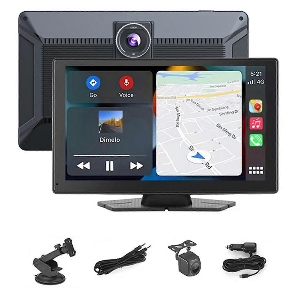 Wireless Car Stereo,9 Inch CarPlay Screen for Apple Car Play & Android Auto,Portable Touch Wireless Car Play Screen Mirror Link Music Video Player, with 4K Front+Rear 1080P Dual Camera Dash Cam