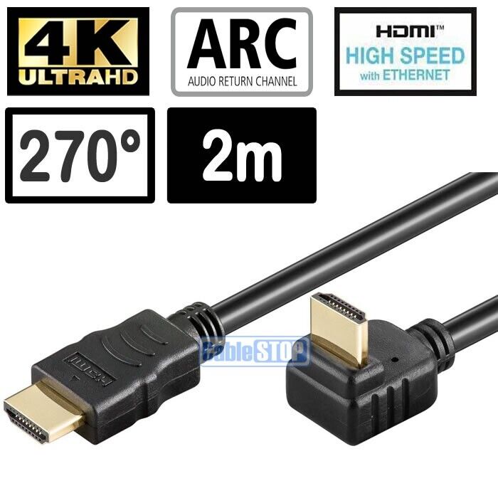 2m ULTRA HD 4K HDMI LEAD to RIGHT ANGLE (L) HDMI 270 DEGREES SMART TV PS5 CABLE
