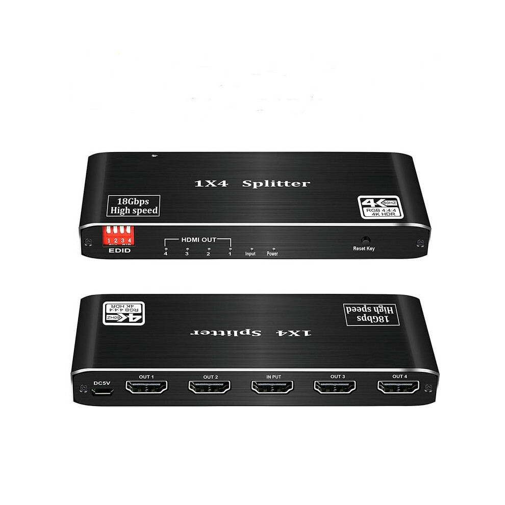 4K HDMI Splitter 1 In 4 Out HDMI 2.0 4K60Hz HDR HDCP2.2 Support 3D Video for TV Projector Monitor