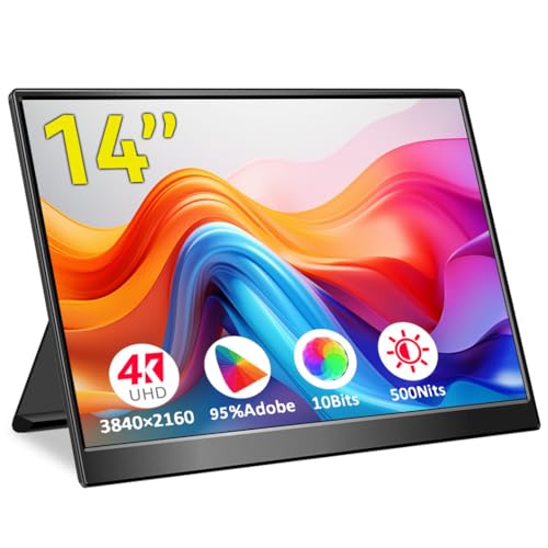Magedok 4k Portable Monitor, 14 Inch Portable Monitor USB C, 10-Bit Adobe 95% HDR Game Display with USB C/HDMI/Mini DP Compatible with Laptop/Game Console/PC/Surface