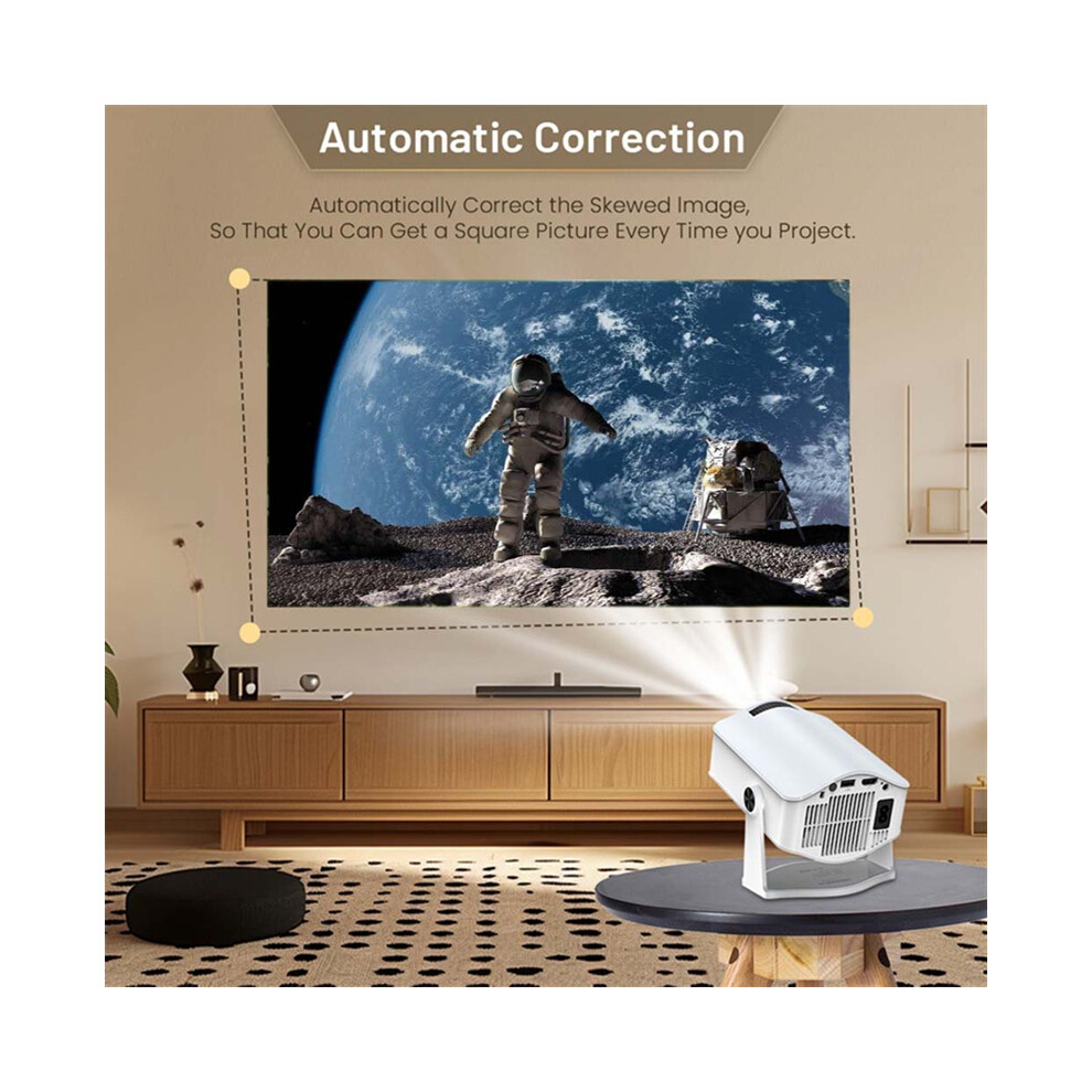 4K HD Mini Smart WiFi Android 11.0 Projector for Walls and Ceilings - Auto Keystone Correction, 180° Angle Adjustable, UK Plug (White)