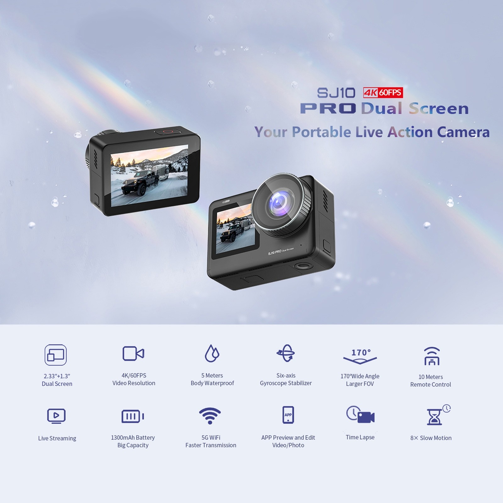 SJCAM SJ10PRO 4K/60FPS High Resolution Dual Screen Sports Camera Portable D HEN