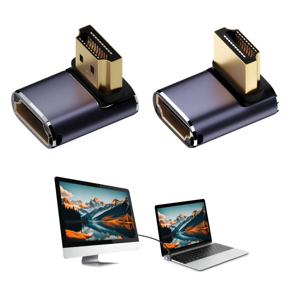 2PCS 8k HDMI 90 Degree Adapter Up&down, Angle Right 48Gbps Male to HDMI Connector 60Hz with LED Compatible with 8K@60Hz, 4K@120Hz Laptop, Tablet, DVD