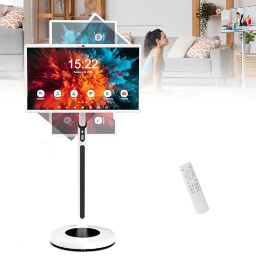 Portable Standing TV with Rotatable Tablet and Smart Monitor on Wheels – 32-inch Touch Screen TV with 4K Camera and Remote Control, Adjustable Stand, 8+128G Storage