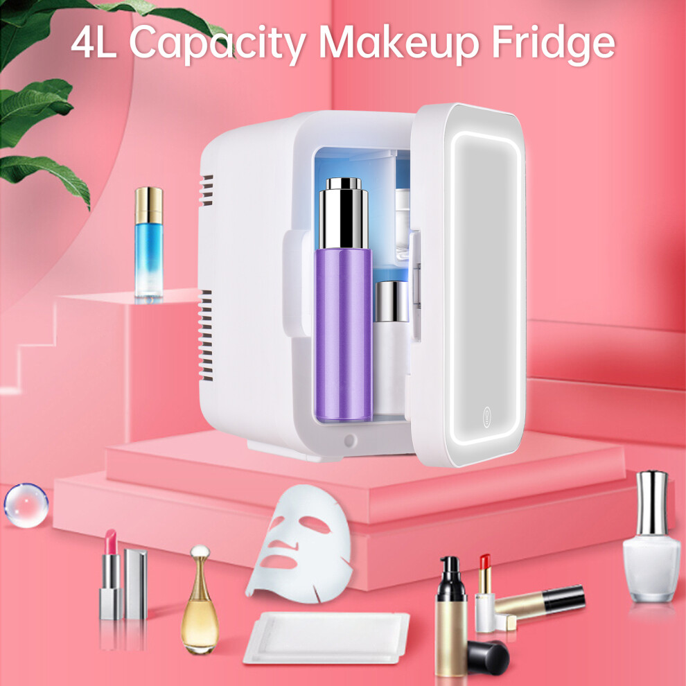 4L Mini Makeup Fridge with LED Light Mirror Portable Cosmetic Storage Refrigerat
