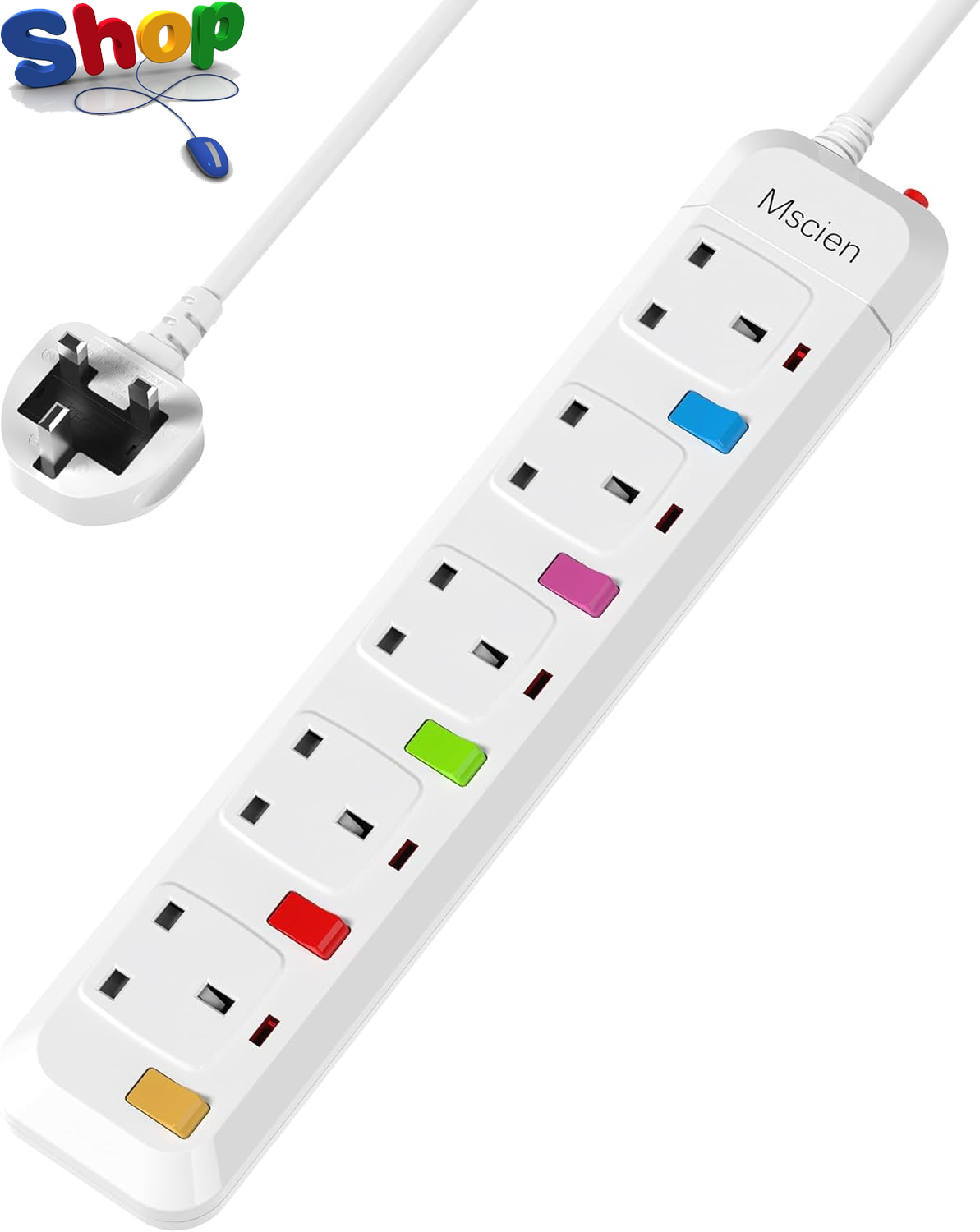 Mscien 4M Extension Lead with Switches, 5 Way Surge Protected Extension Lead, U