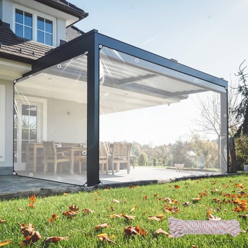 Honsaifau Clear Tarpaulin Waterproof Heavy-Duty: 4m x 5m UV Resistant 130GSM PE Sheet with Reinforced Grommets for Pergola Side Panels & Outdoor Furniture