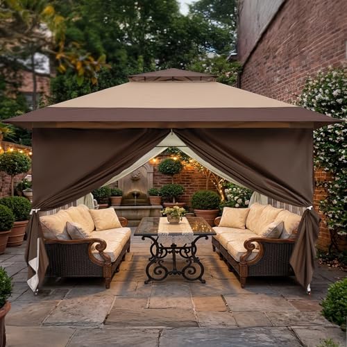 All Seasons 3m x 3m Pop Up Garden Gazebo & Side Panels-Beige