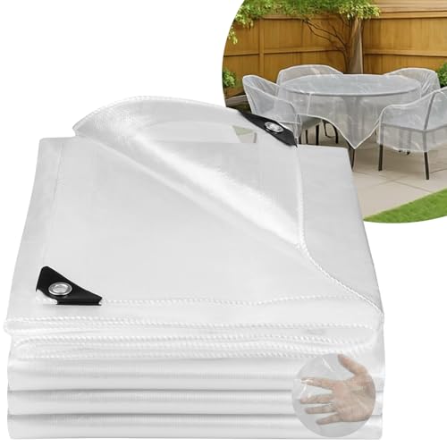 Honsaifau Clear Tarpaulin Waterproof Heavy-Duty: 4m x 6m UV Resistant 130GSM PE Sheet with Reinforced Grommets for Pergola Side Panels & Outdoor Furniture