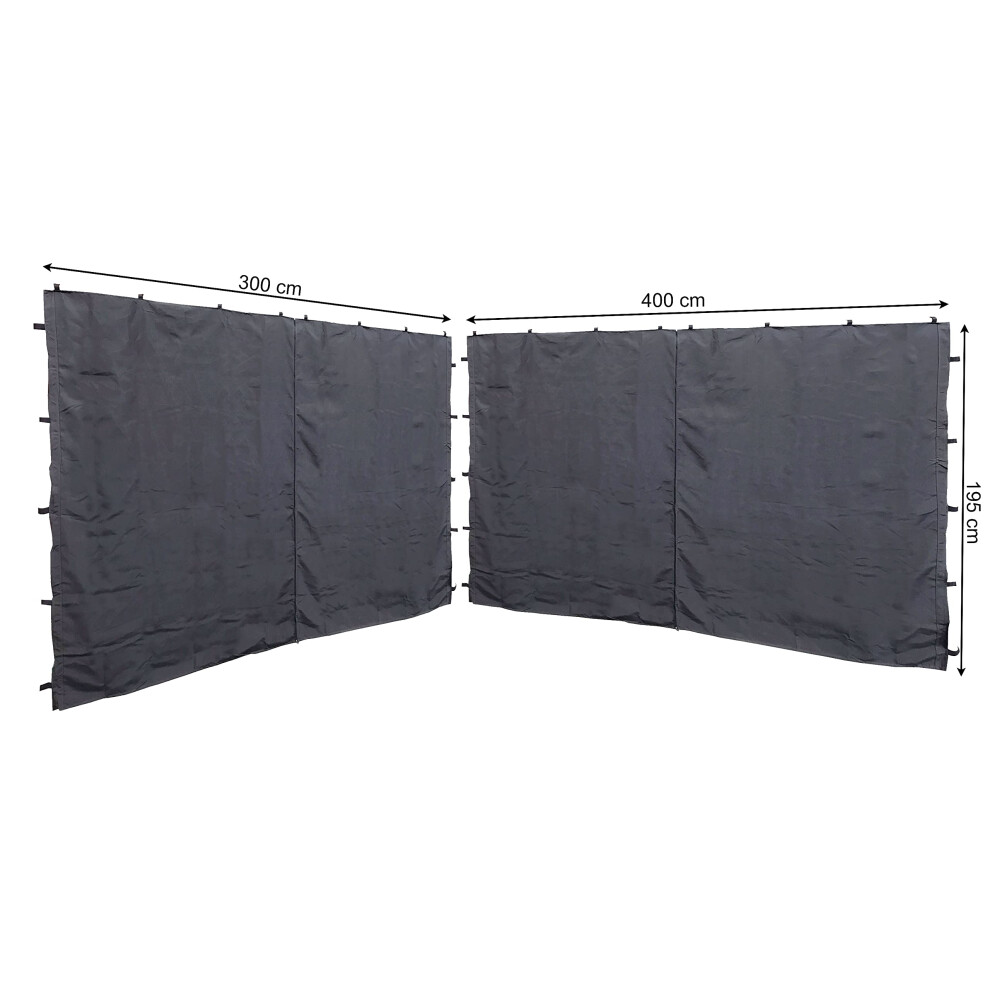 QUICK STAR 2 Side Panels with Zip for Gazebo 3x4m Pavilion Sidewall Anthracite RAL 7012