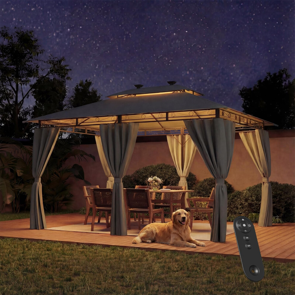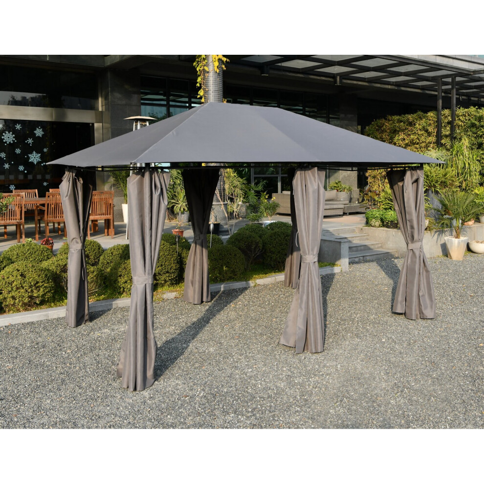 3m x 4m Large Lilly Gazebo With Side Curtains Grey - Great Gazebo