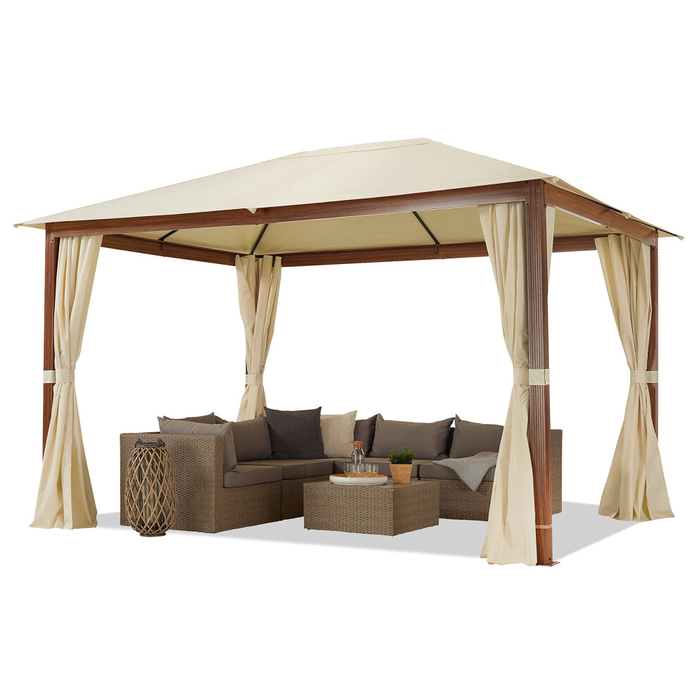 TOOLPORT Garden gazebo 3x4 m wood finish, roof approx. 220 g/m? polyester 4 side panels in champagne