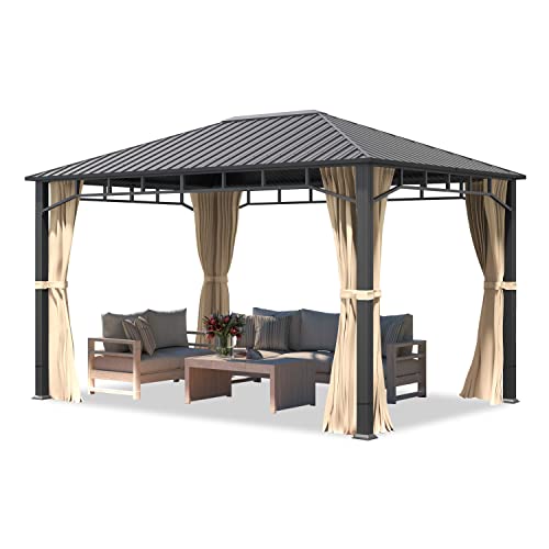 Charles Bentley Steel Art Gazebo 3M x 4M with Side Curtains, Beige