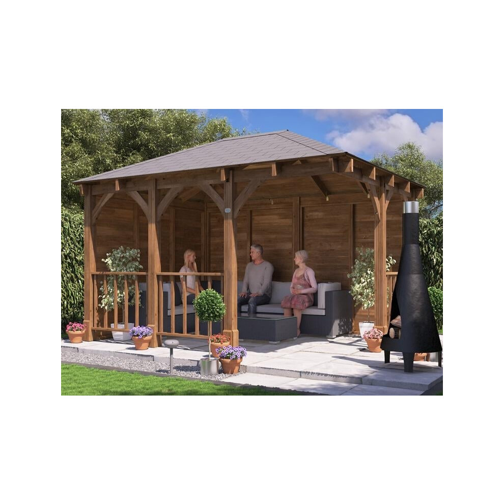 Dunster House Corner Gazebo Kit 4m x 3m Leviathan with Side Walls and Roof Shingles