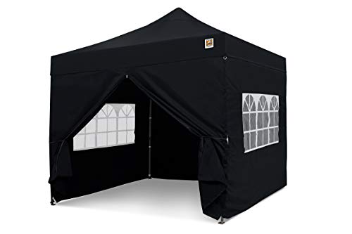 ABCCANOPY 2.5x2.5M Pop up Gazebo With Two Side Panels Upgraded Roller Bag, 4 Weight Bags, Stakes and Ropes (Black)