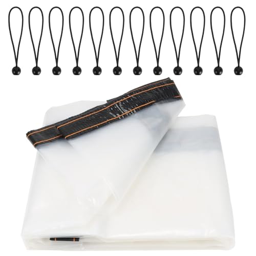 Luabue 3M X 3M Clear Tarpaulin Waterproof Heavy Duty Transparent Tarpaulin with Eyelets Plastic Tarp Cover Sheet with 12Pcs Bungees Ball Cord for Greenhouse Garden Furniture Shed Gazebo Side Panels